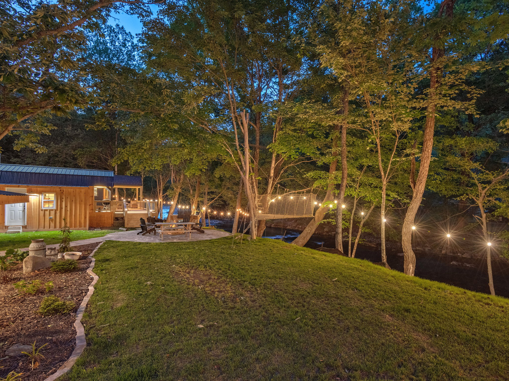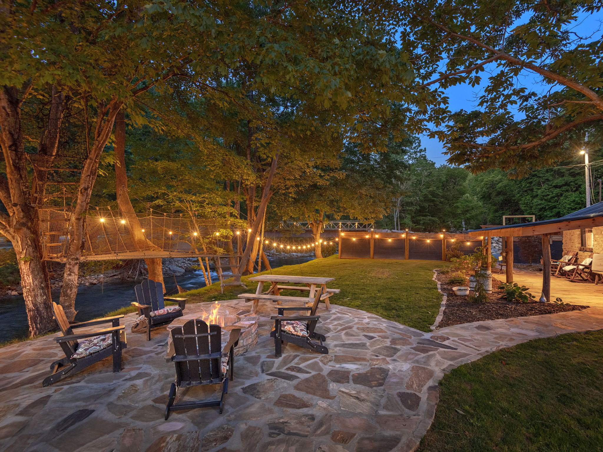 • Riverfront fire pit, hammocks and outdoor seating areas